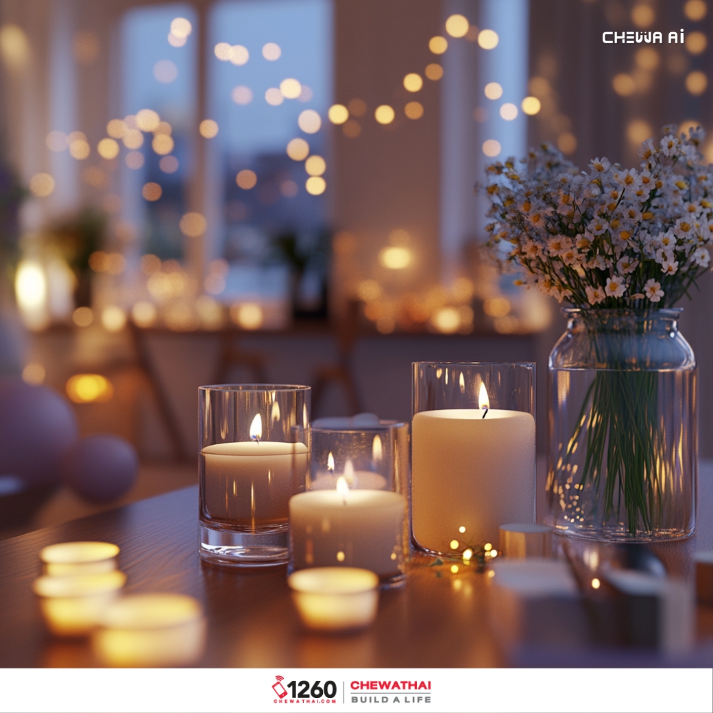 3. เทียนหอม: กลิ่นหอมของเทียนจะช่วยสร้างบรรยากาศที่ผ่อนคลายและอบอุ่น