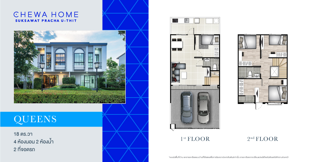 | QUEENS ขนาดที่ดิน 18 ตรว. พื้นที่ใช้สอยประมาณ 120 ตร.ม. | |