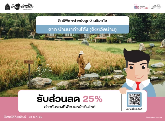 3. กดรับสิทธิ์ผ่าน LINE Official : @Chewathaisociety > เลือก Privilege > ค้นหา โรงแรม บ้านนาก๋างโต้ง> และกดรับสิทธิ์เพื่อรับโค้ด