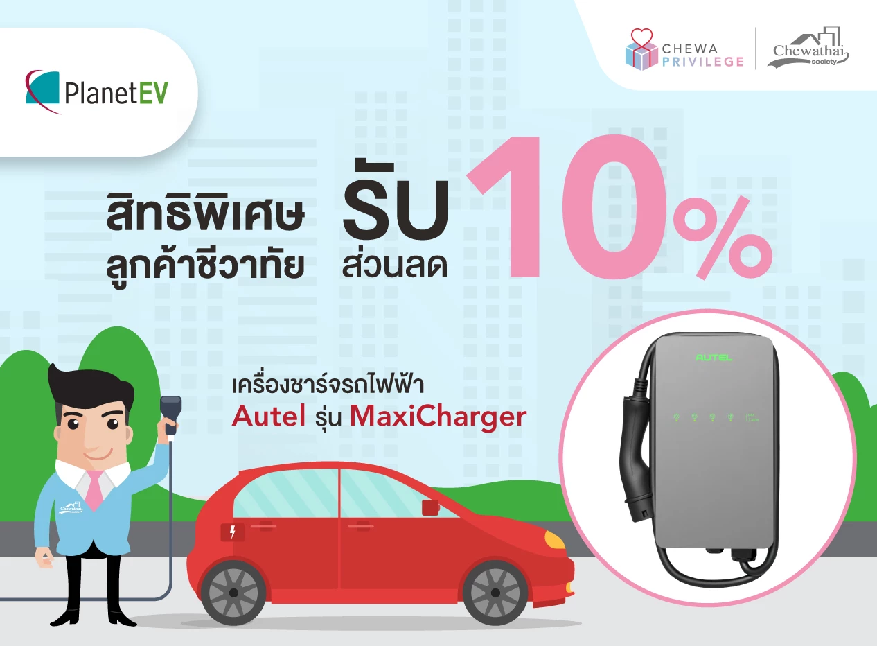 สิทธิพิเศษ : ลูกบ้านชีวาทัย รับส่วนลด 10% เมื่อซื้อเครื่องชาร์จรถไฟฟ้า จาก PlanetEV